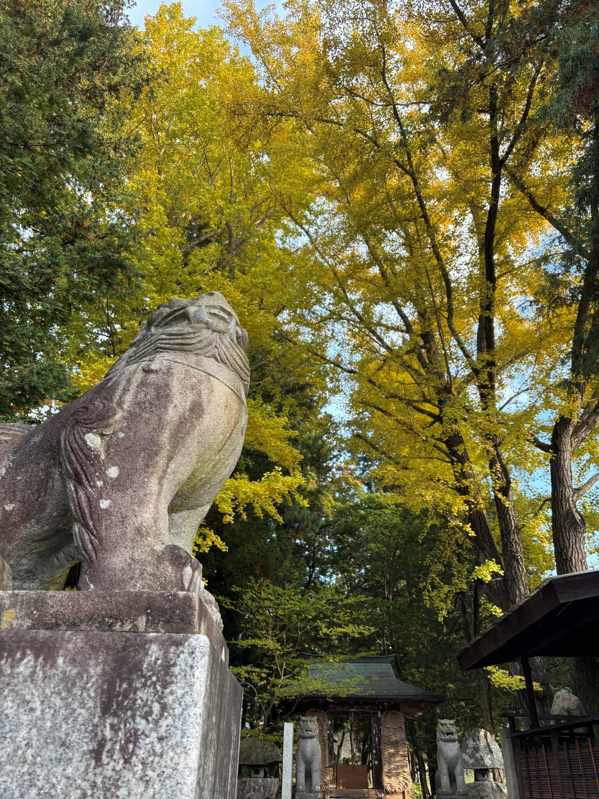 大王神社の大きなイチョウが黄色く色づき始めました この後もう少し色を変え、見上げる黄色のカーペットのように空を染め上げます。