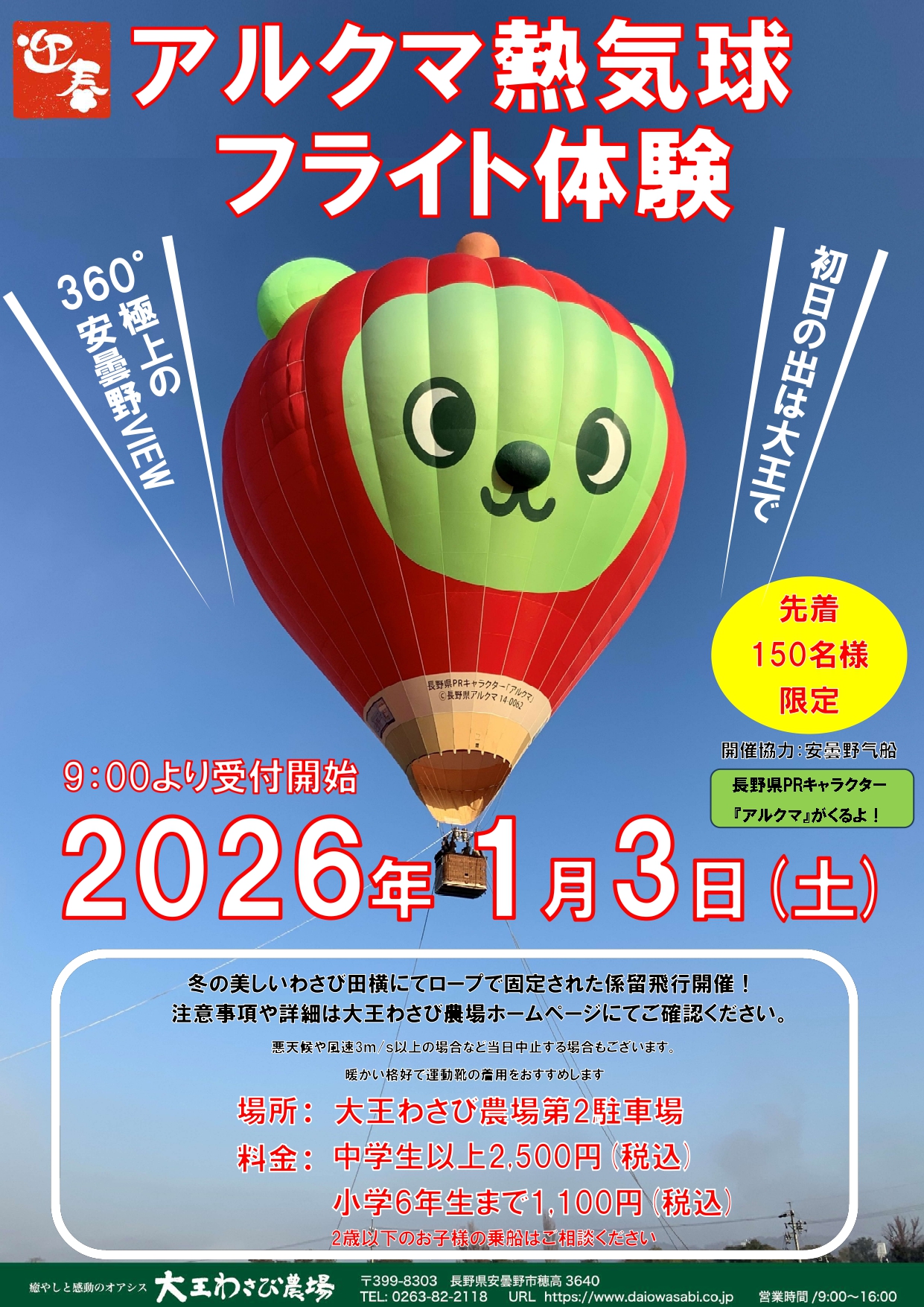 絶景をご覧いただく恒例の「アルクマ熱気球」や
